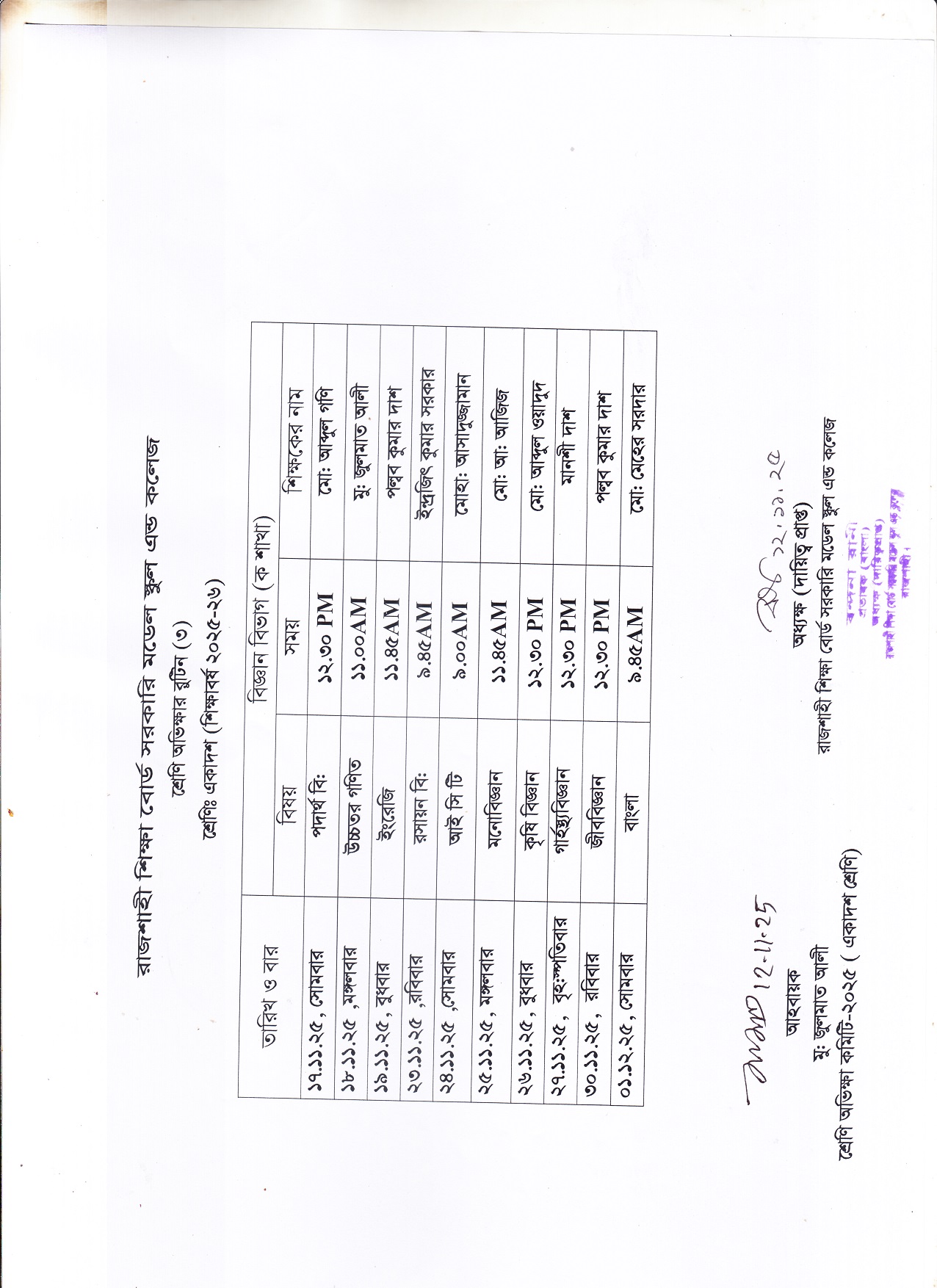 শ্রেণি অভীক্ষা রুটিন ২০২৫ (একাদশ শ্রেণি)