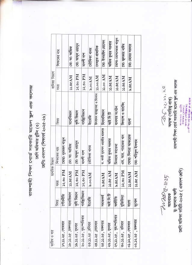 শ্রেণি অভীক্ষা রুটিন ২০২৫ (একাদশ শ্রেণি)