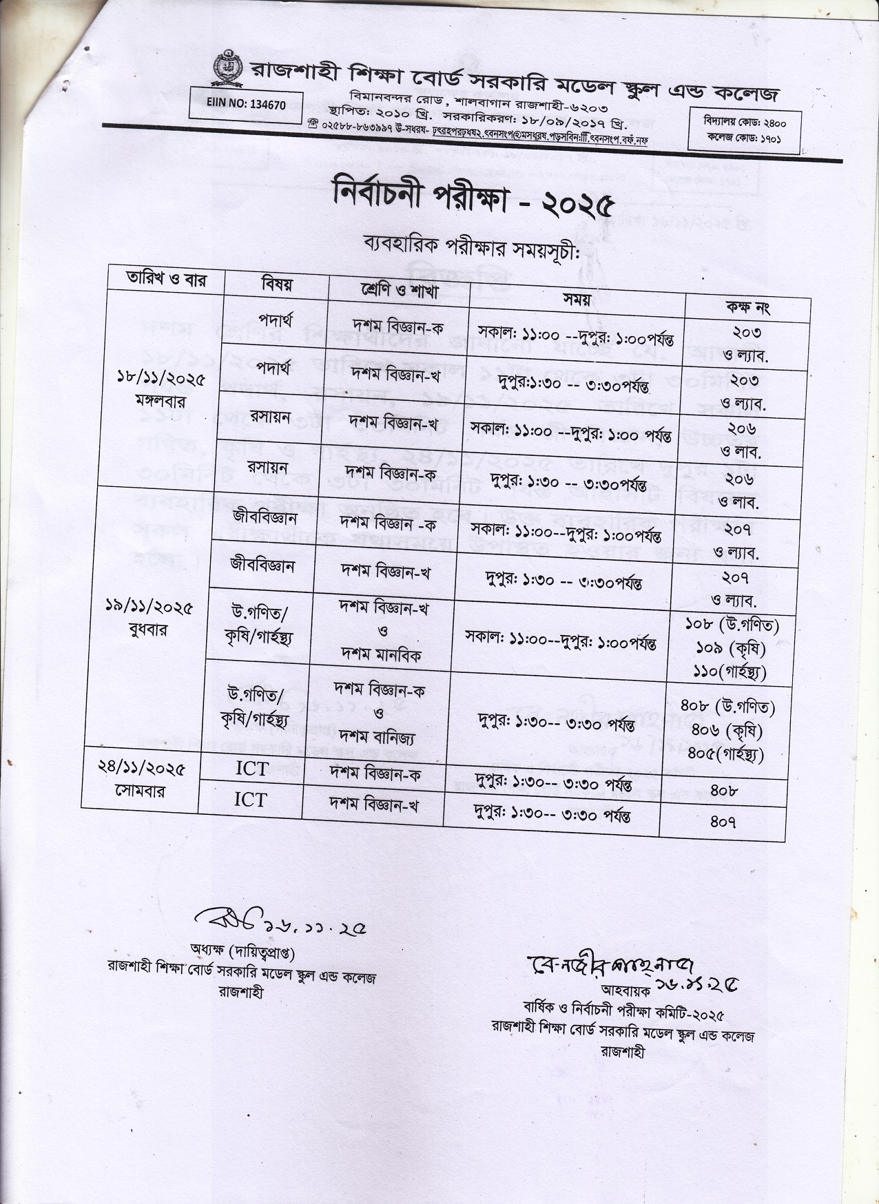 দশম শ্রেণির ব্যবহারিক পরীক্ষার সময়সূচি