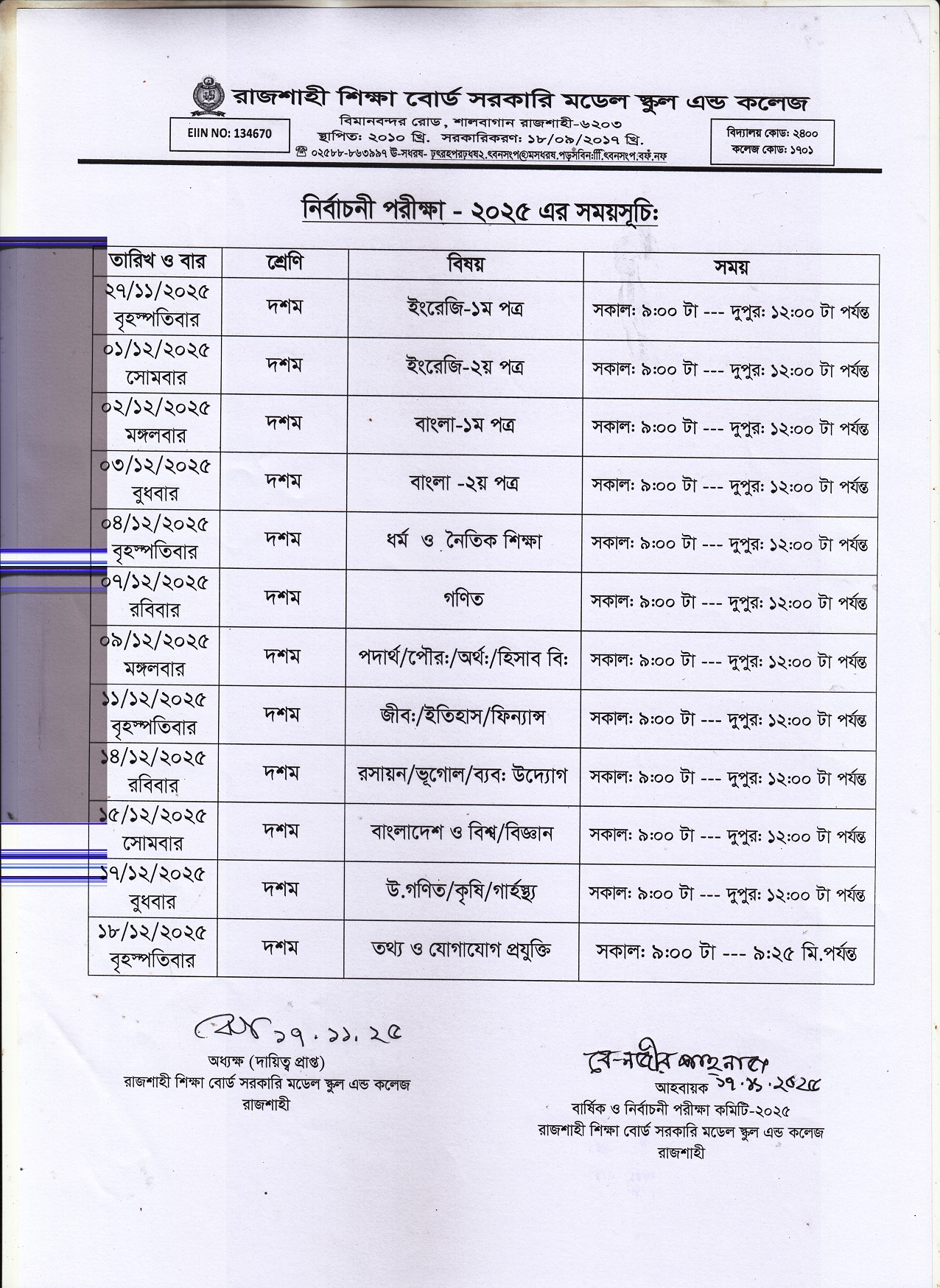 EIIN NO: 134670