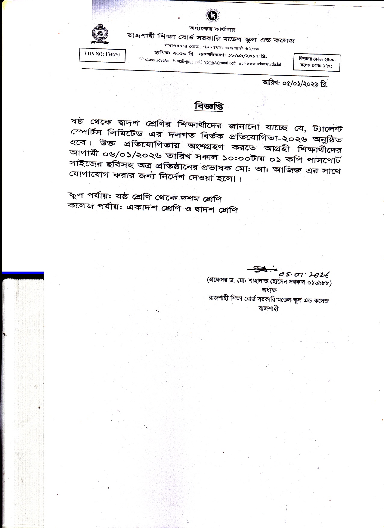 It is true that Rajshahi is widely known as the 'City of Education', but it’s an irony that it lacks suitable institutions which can offer up-to-date and standard education. Keeping this view in mind, the Ministry of Education took a decision to establish seven model schools and colleges in seven divisional cities which would be supervised and financed by them...