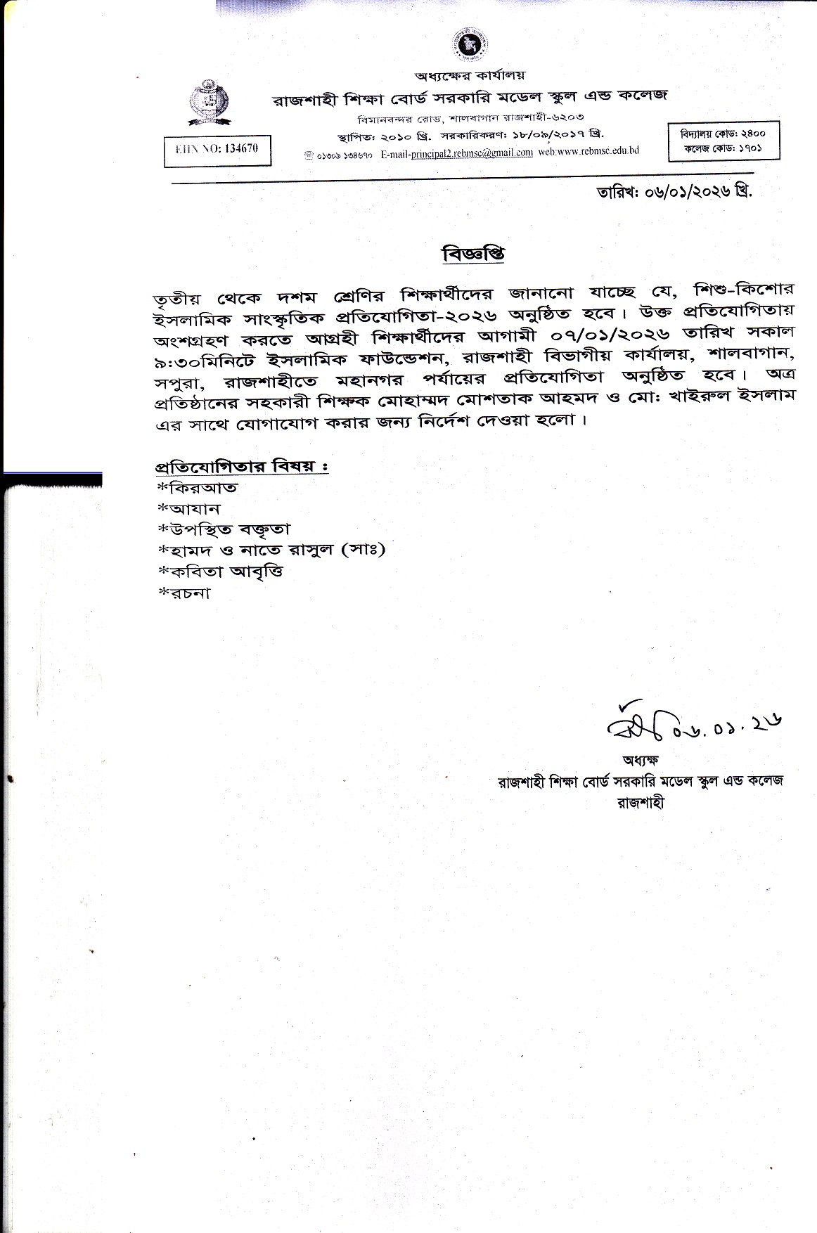 EIIN NO: 134670