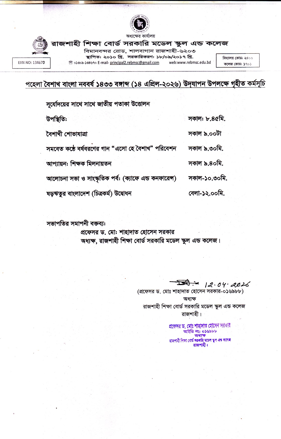 বাংলা নববর্ষ (১৪৩৩ বঙ্গাব্দ) উদযাপন উপলক্ষে গৃহীত কর্মসূচি
