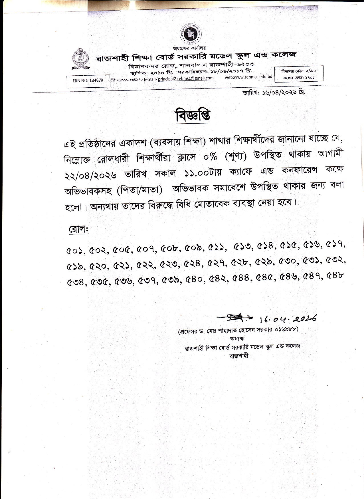 EIIN NO: 134670