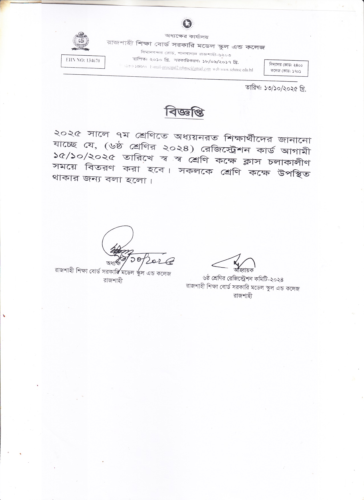 EIIN NO: 134670