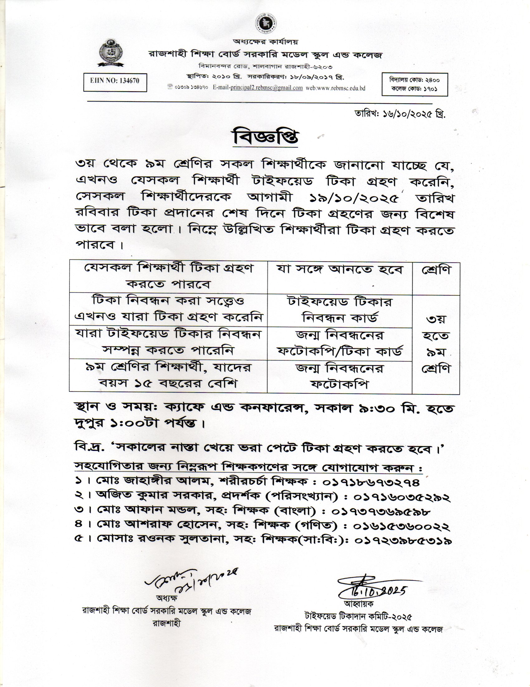 ১৯/১০/২০২৫ তারিখ টাইফয়েড টিকা