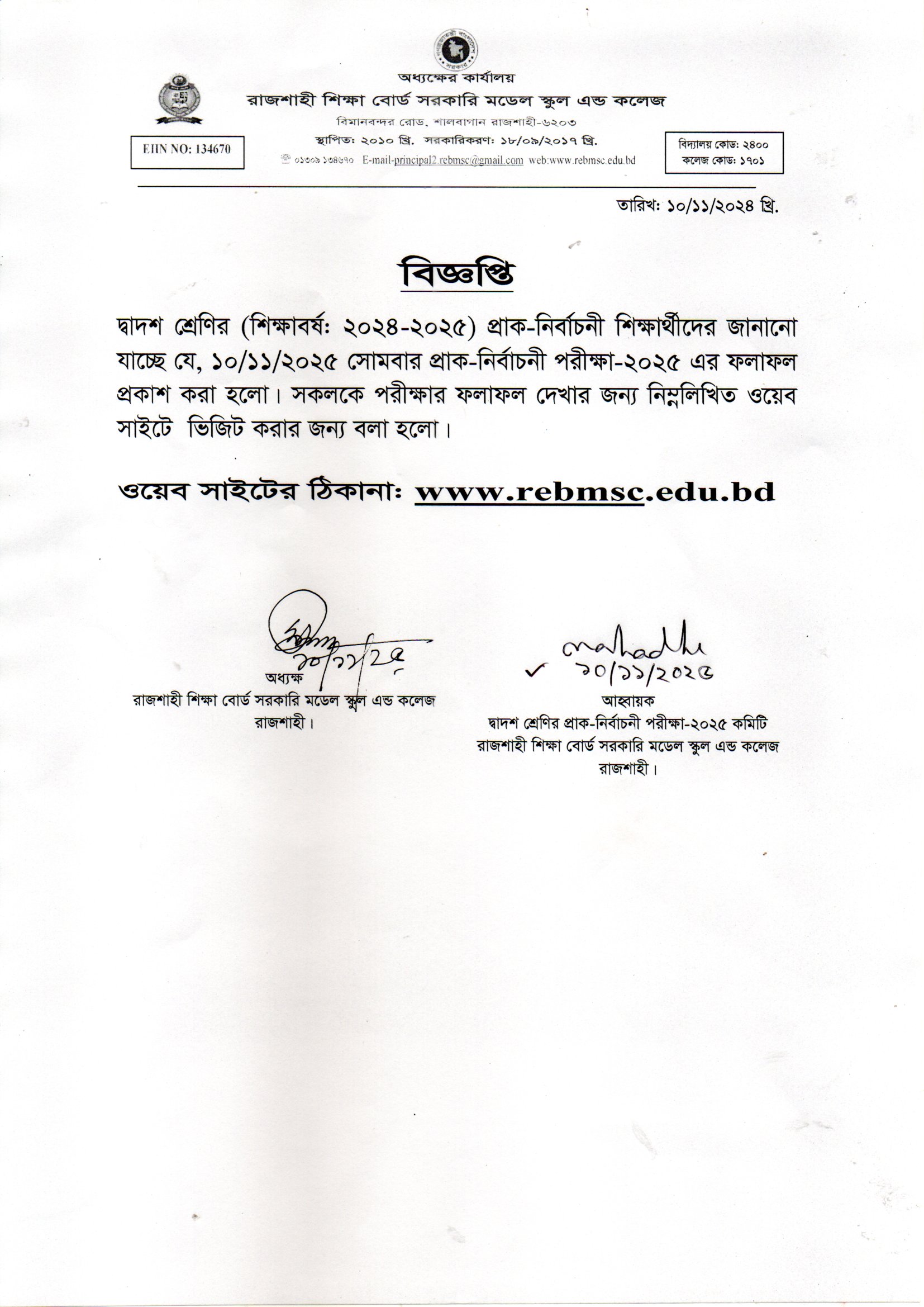 দ্বাদশ শ্রেণির প্রাক-নির্বাচনী পরীক্ষার ফলাফল
