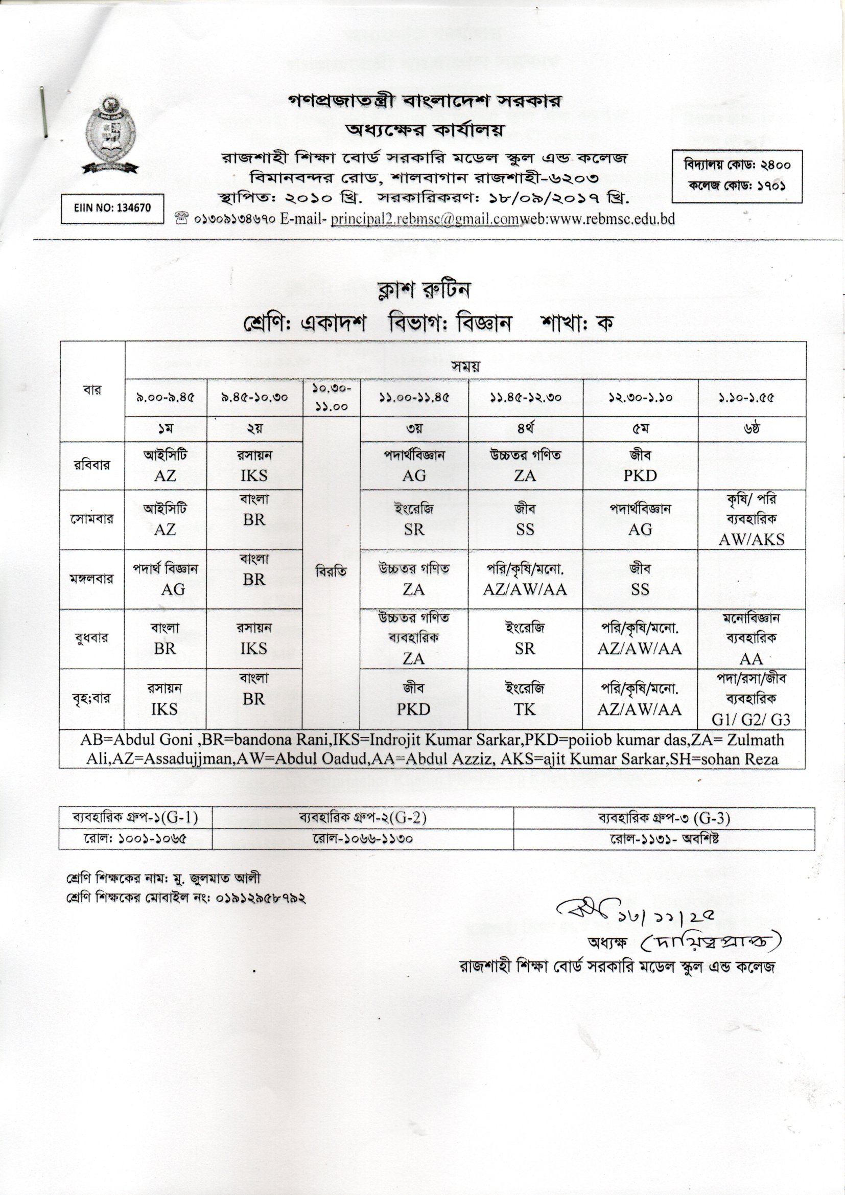 একাদশ-বিজ্ঞান-ক-ক্লাস রুটিন