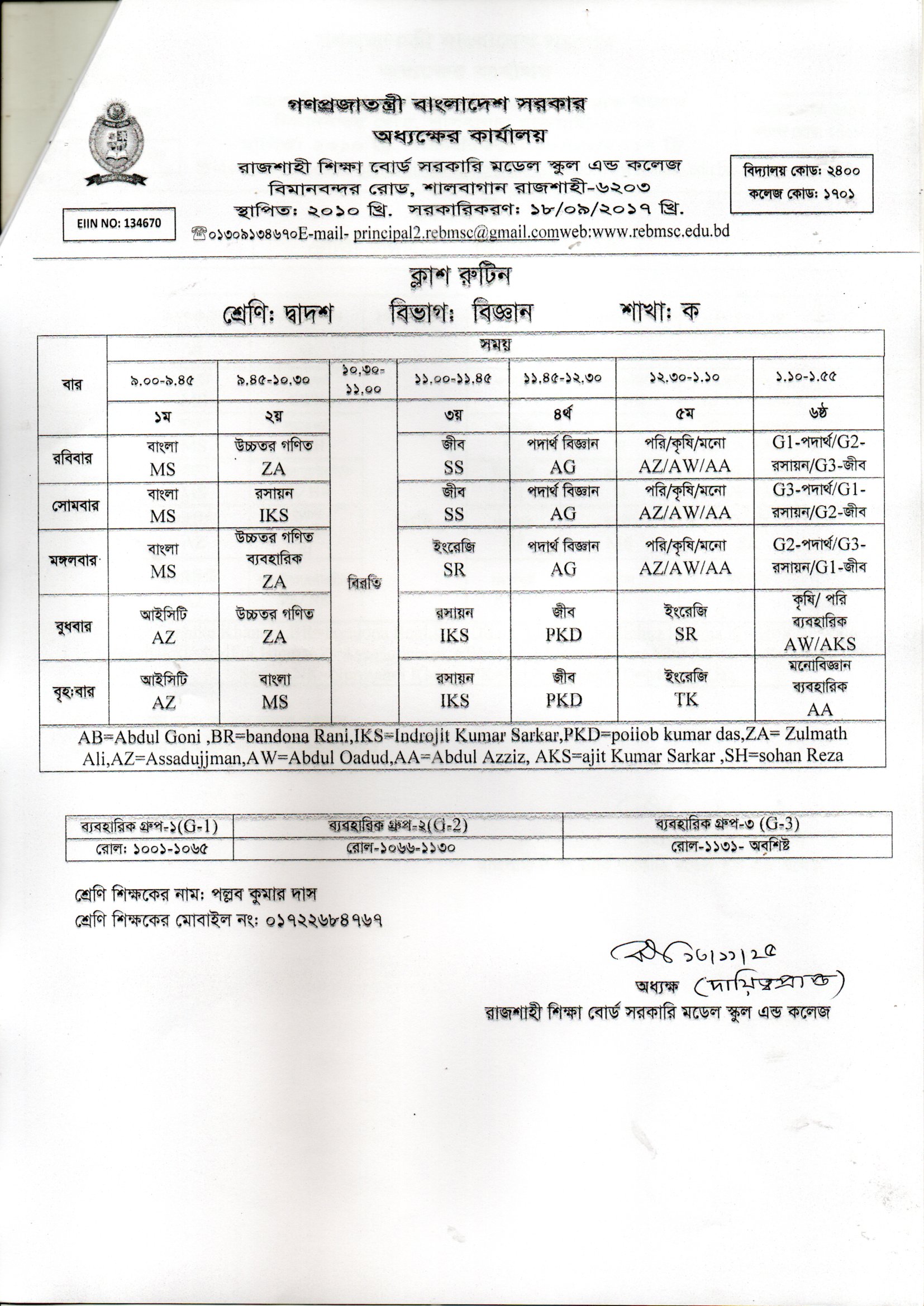দ্বাদশ-বিজ্ঞান-ক্লাস রুটিন