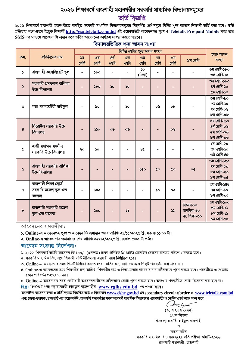২০২৬ শিক্ষাবর্ষে ভর্তি বিজ্ঞপ্তি।