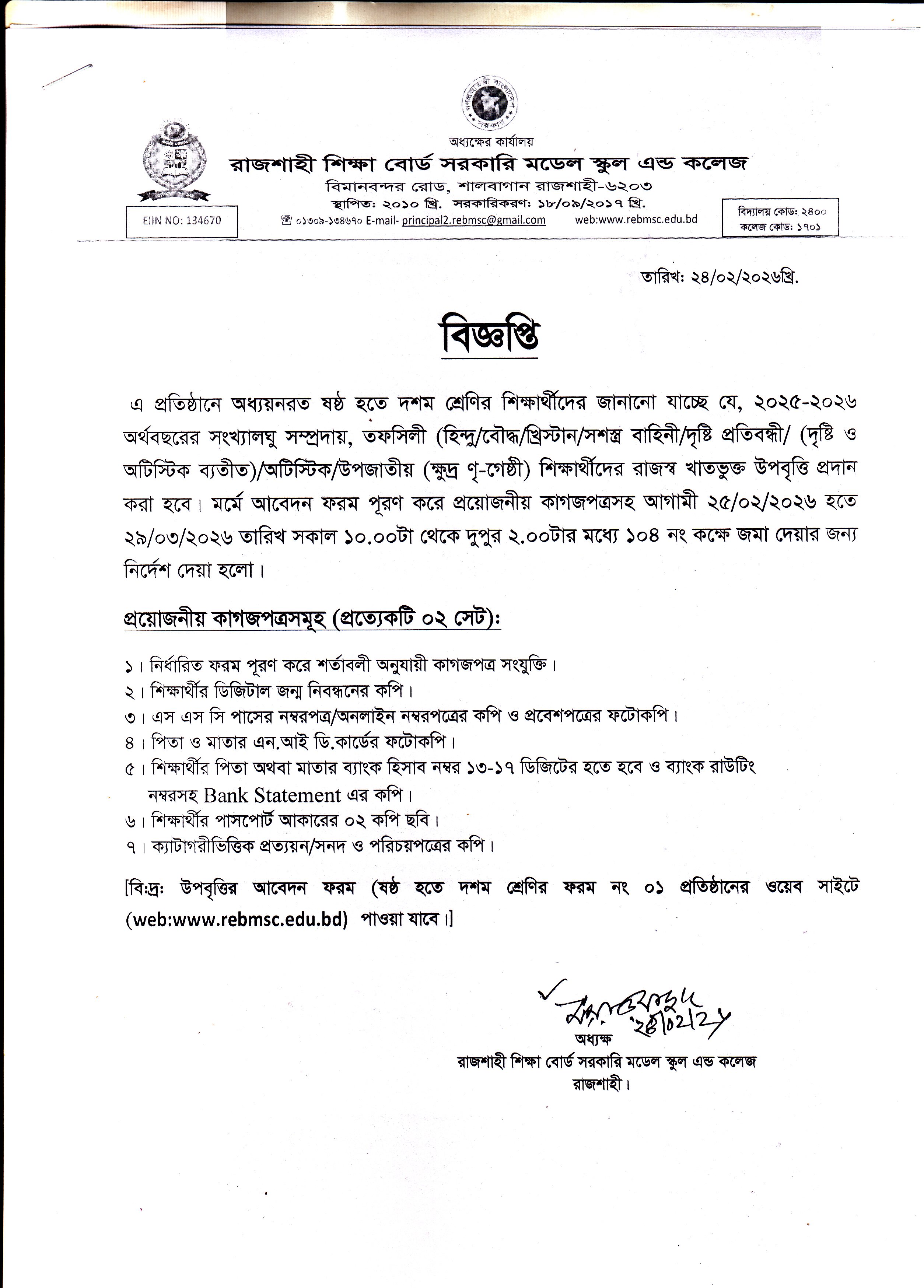 ক্ষুদ্র নৃ গোষ্ঠীর উপবৃত্তি (ষষ্ঠ-দশম শ্রেণি) সংক্রান্ত।