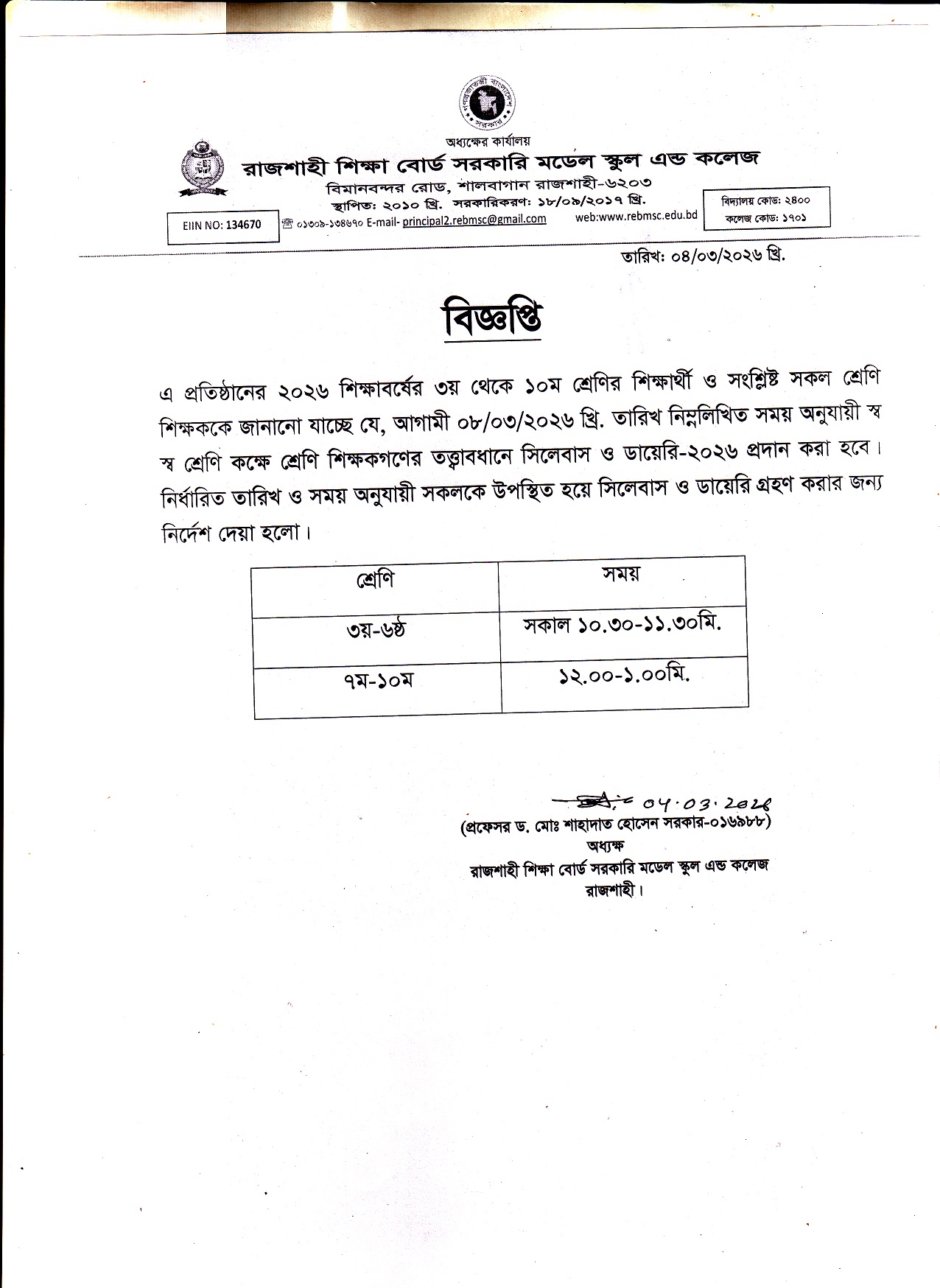 সিলেবাস ও ডায়েরি-২০২৬ সংক্রান্ত।