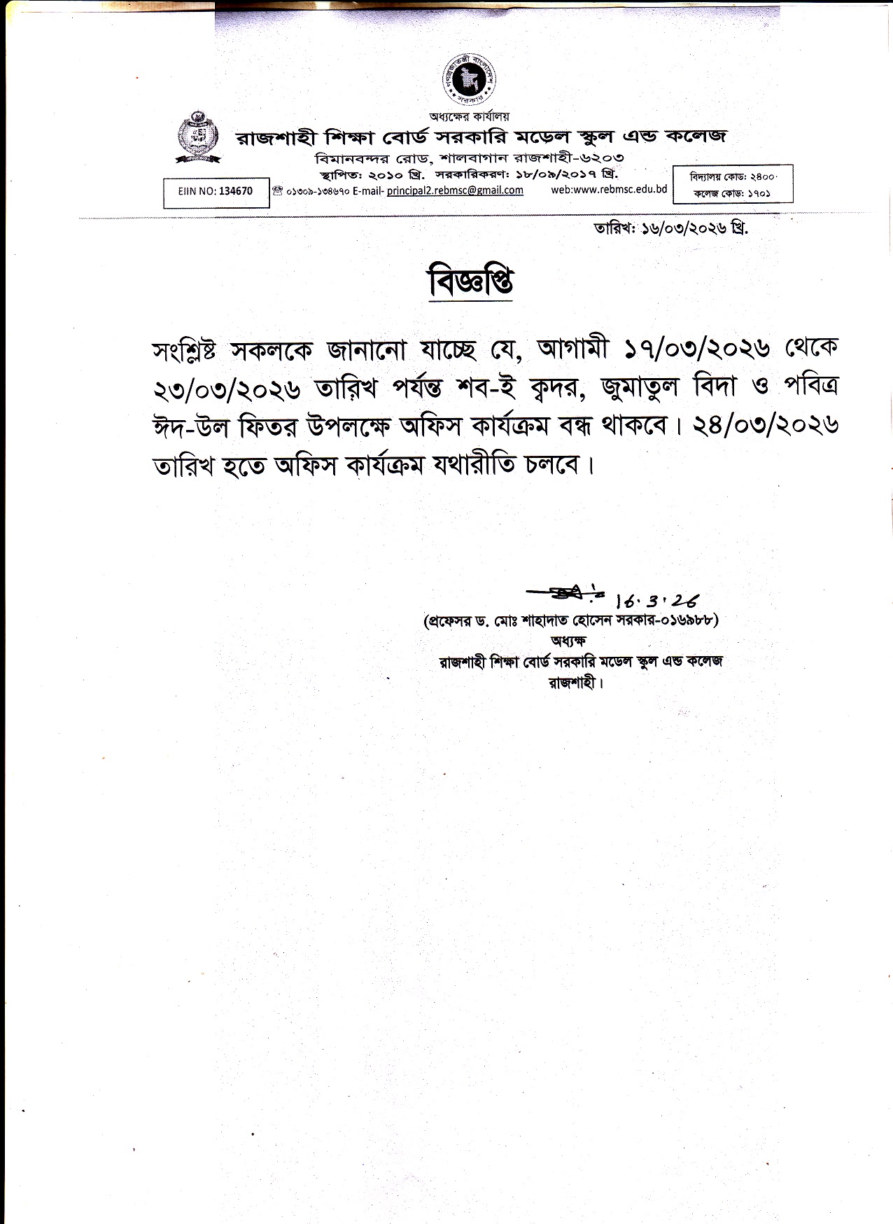 পবিত্র ঈদ-উল-ফিতর-২০২৬ উপলক্ষে অফিস ছুটি সংক্রান্ত।