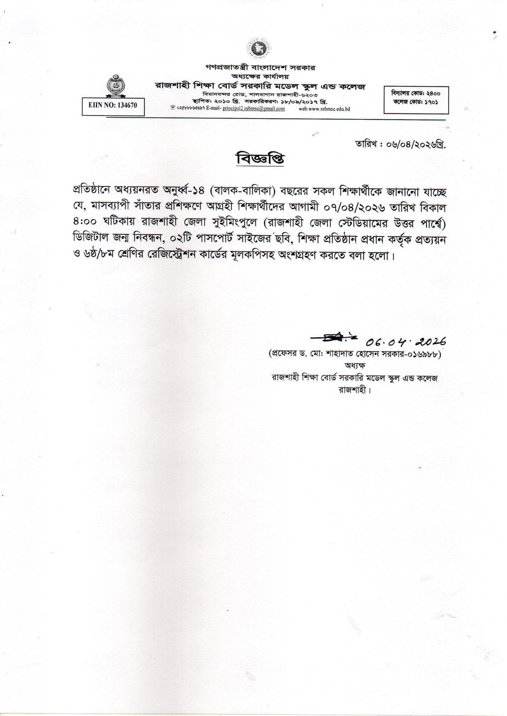 EIIN NO: 134670