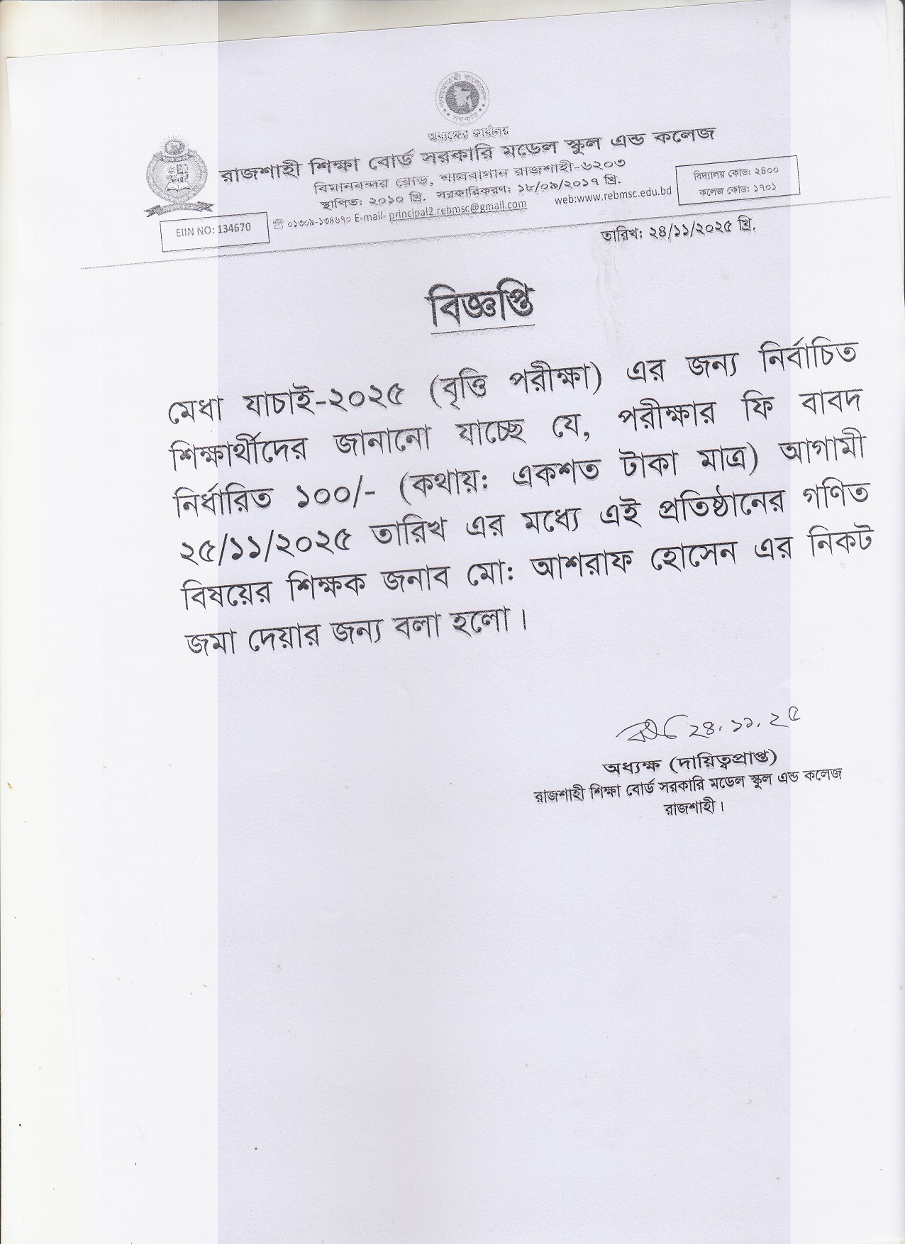 মেধা যাচাই-২০২৫ (বৃত্তি পরীক্ষা)