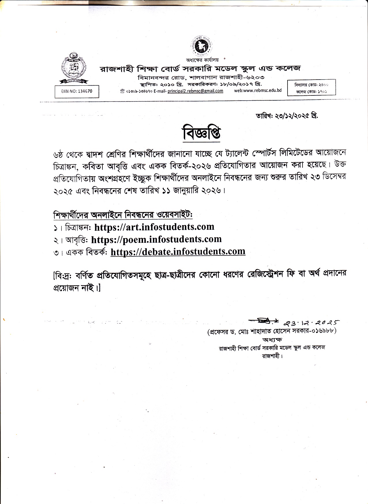 ট্যালেন্ট স্পের্টস কর্তৃক আয়োজিত বিভিন্ন প্রতিযোগিতা