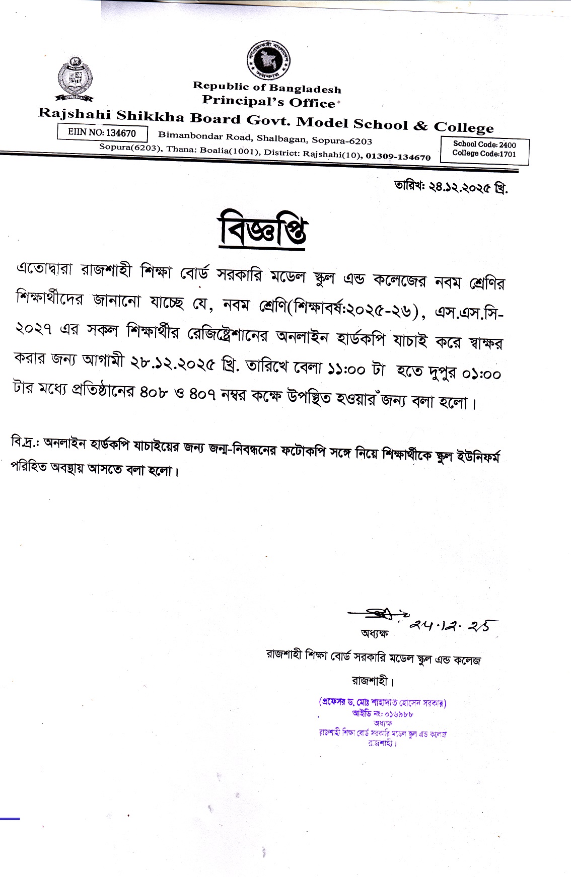 নবম শ্রেণির রেজিস্ট্রেশন সংক্রান্ত।