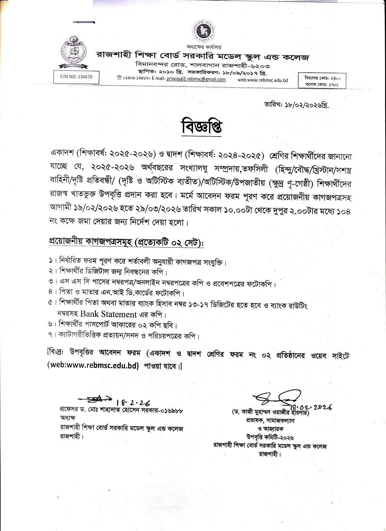 ক্ষুদ্র নৃ গোষ্ঠীর উপবৃত্তি সংক্রান্ত।