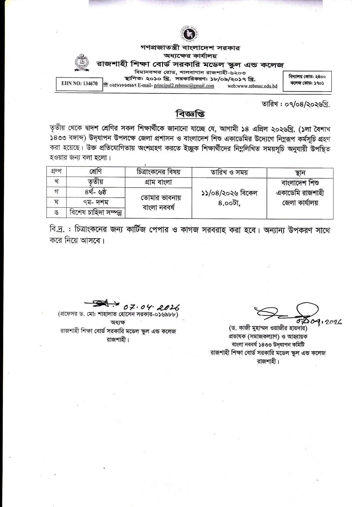 পহেলা বৈশাখ উপলক্ষে চিত্রাঙ্কন প্রতিযোগিতা