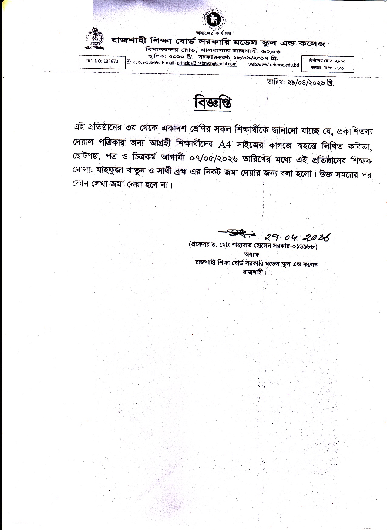 It is true that Rajshahi is widely known as the 'City of Education', but it’s an irony that it lacks suitable institutions which can offer up-to-date and standard education. Keeping this view in mind, the Ministry of Education took a decision to establish seven model schools and colleges in seven divisional cities which would be supervised and financed by them...