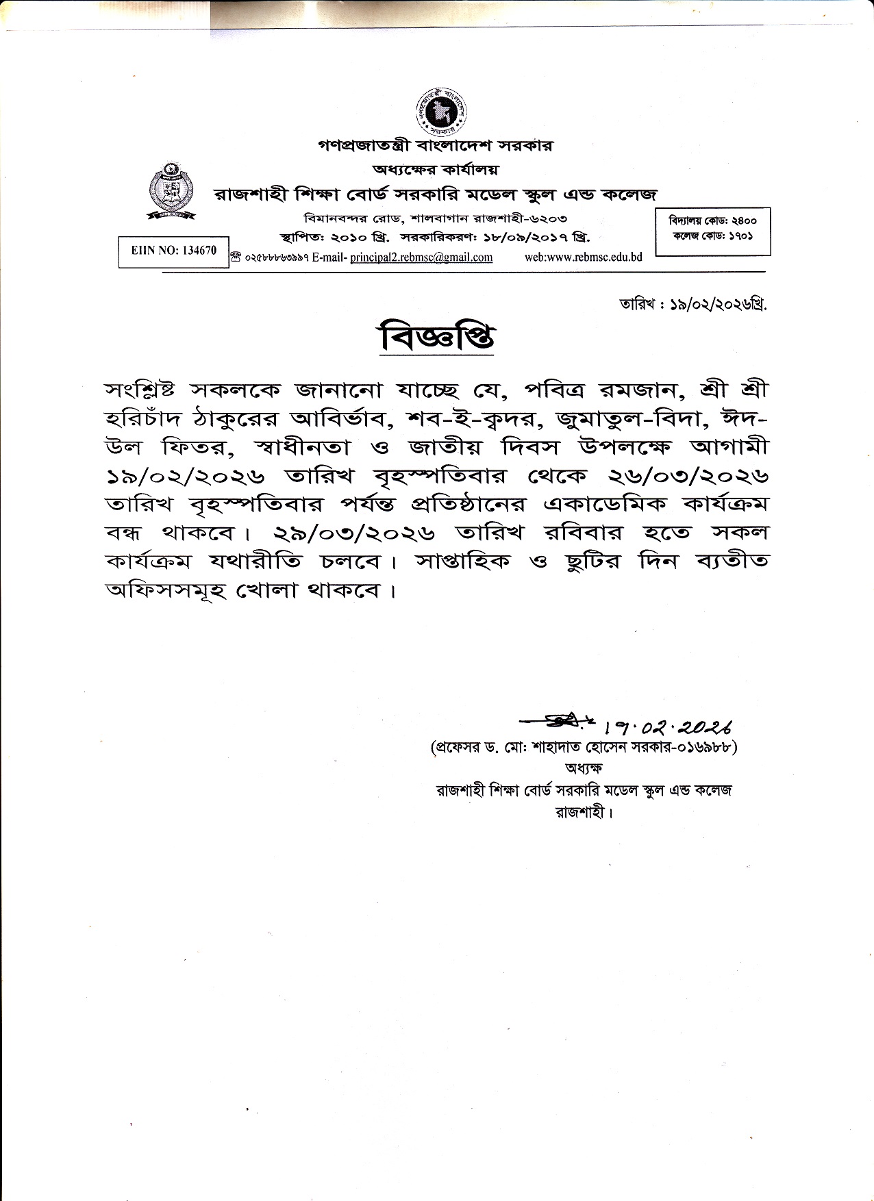 একাডেমিক কার্যক্রম বন্ধ সংক্রান্ত বিজ্ঞপ্তি।