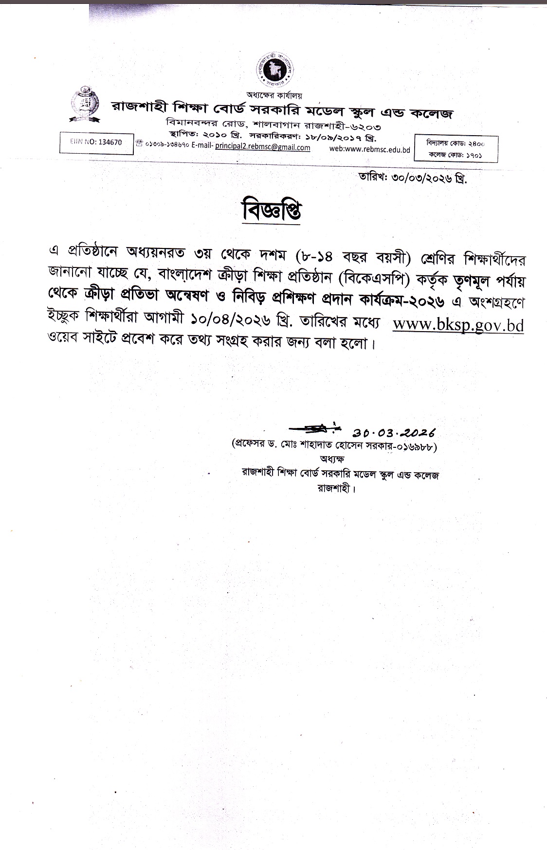 EIIN NO: 134670