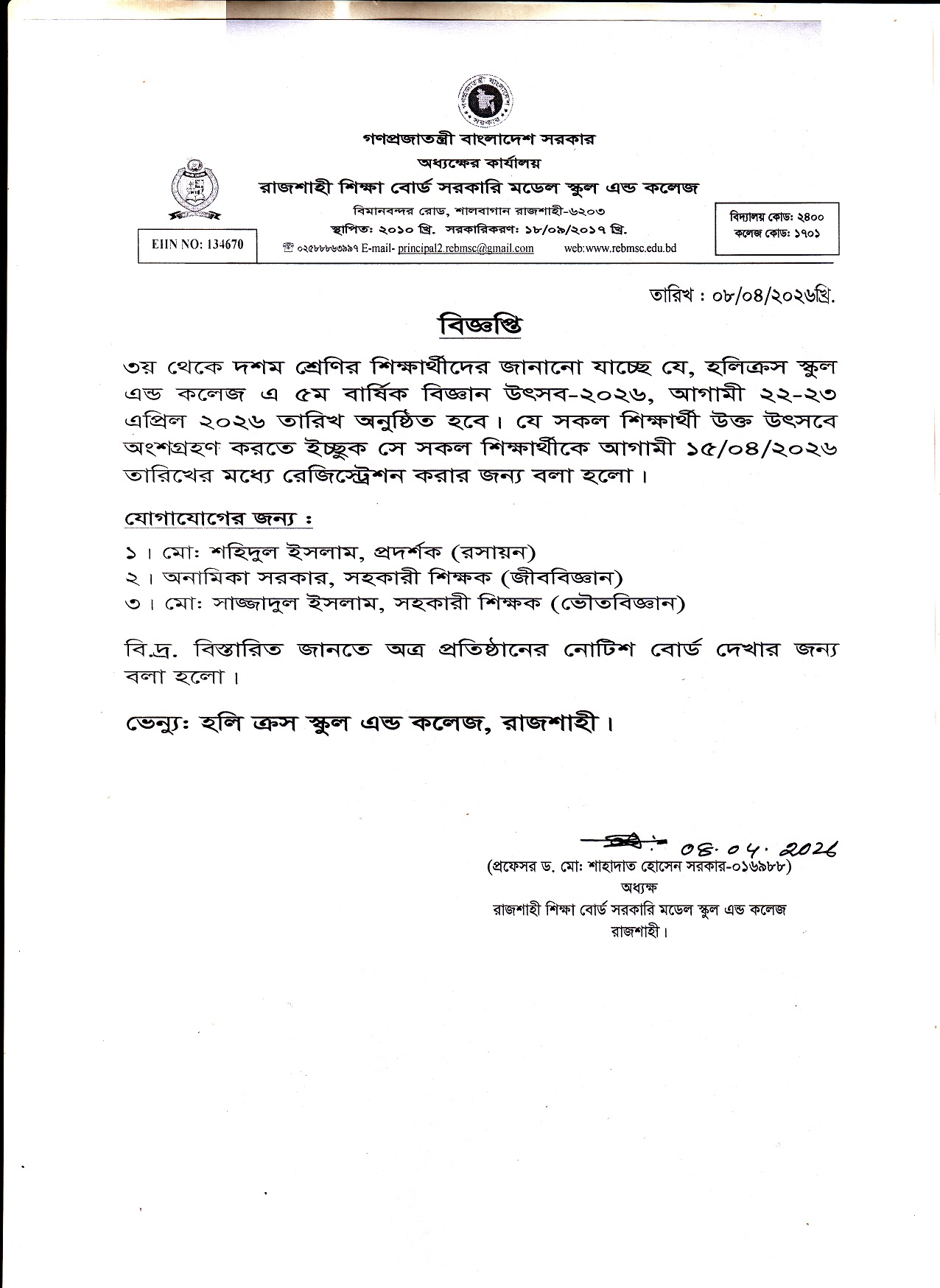 It is true that Rajshahi is widely known as the 'City of Education', but it’s an irony that it lacks suitable institutions which can offer up-to-date and standard education. Keeping this view in mind, the Ministry of Education took a decision to establish seven model schools and colleges in seven divisional cities which would be supervised and financed by them...